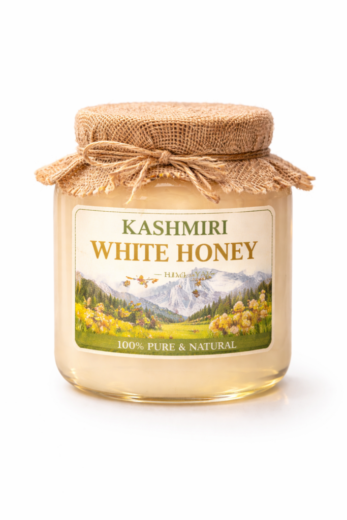 - Kashmiri White Honey is a rare and premium variety of natural honey sourced from the pristine Himalayan regions of Kashmir.